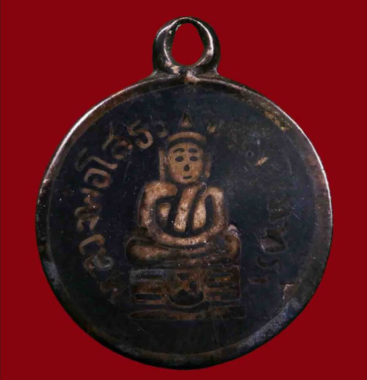 พระพุทธโสธรเหรียญกลมเนื้อเงินลงถมพิมพ์นิยมตุ๊กตาหน้าใหญ่สร้างปี2509สภาพน่ารักครับ