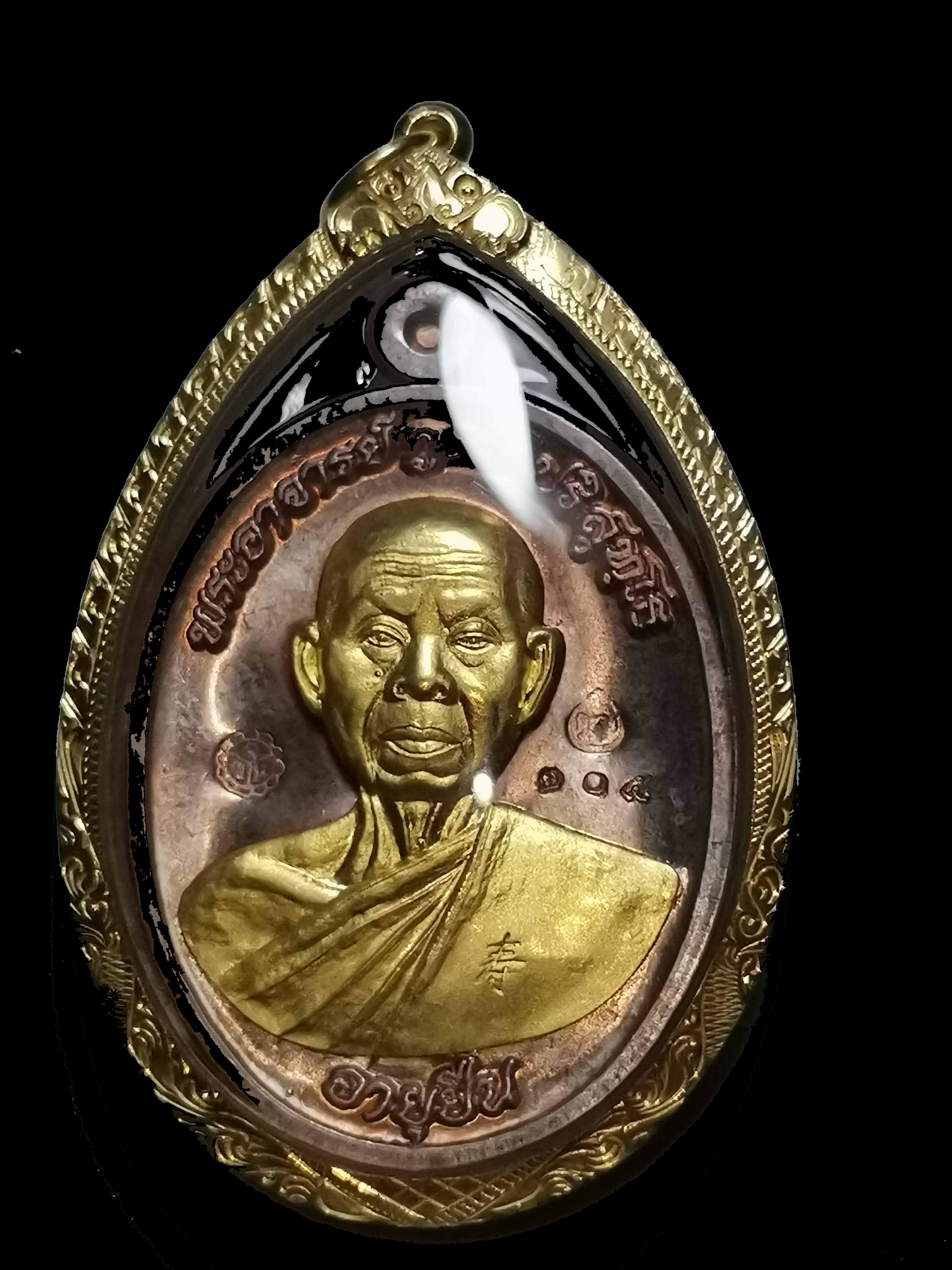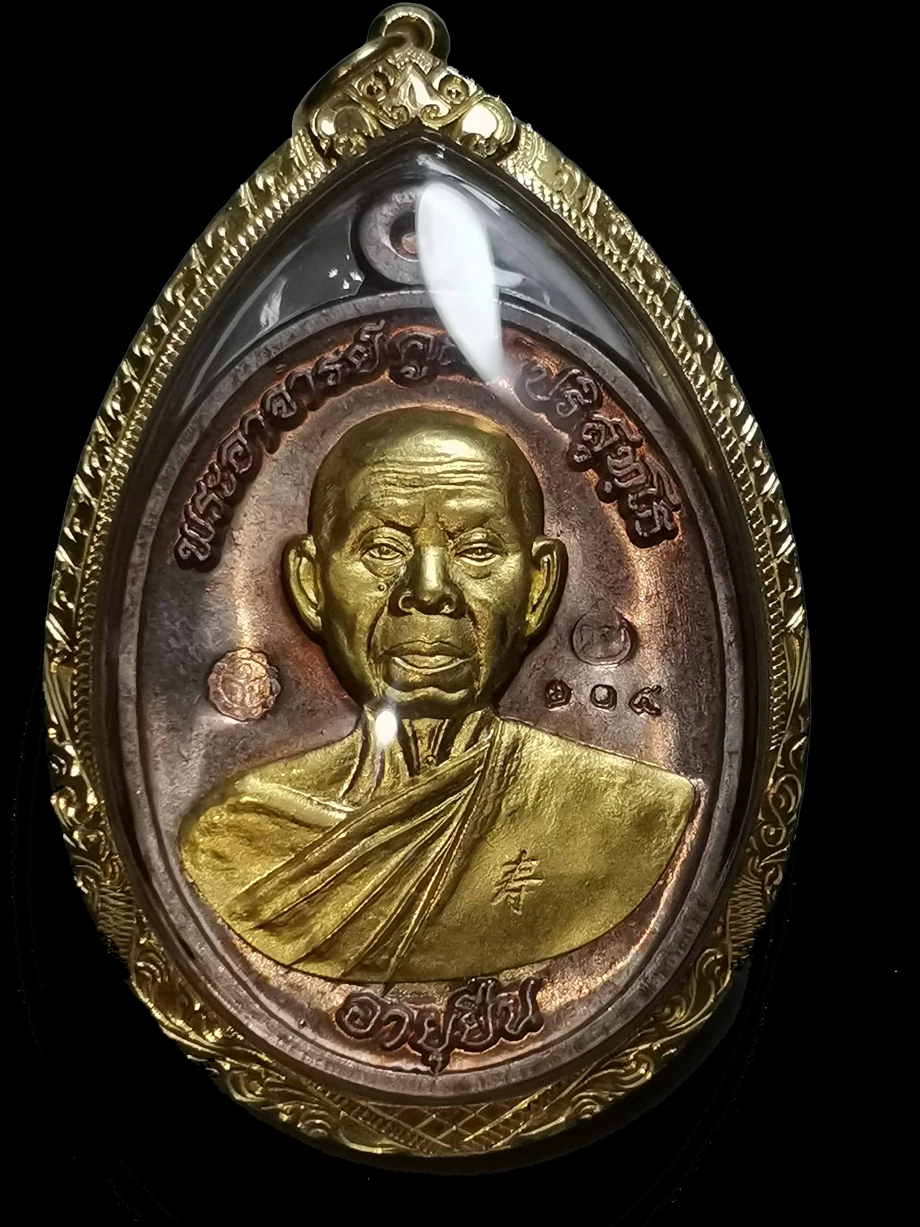 เหรียญรุ่นอายุยืน๘๘ ออกวัดแจ้งนอก ปี 53 เนื้อนะวะ พิ้งค์โกลด์ หน้ากากทองคำ หลังยันต์ หมายเลข 105 เลี่ยมกรอบทองพร้อมบูชา สภาพสวย พร้อมกล่องเดิม และบัตรรับรองจีพระ