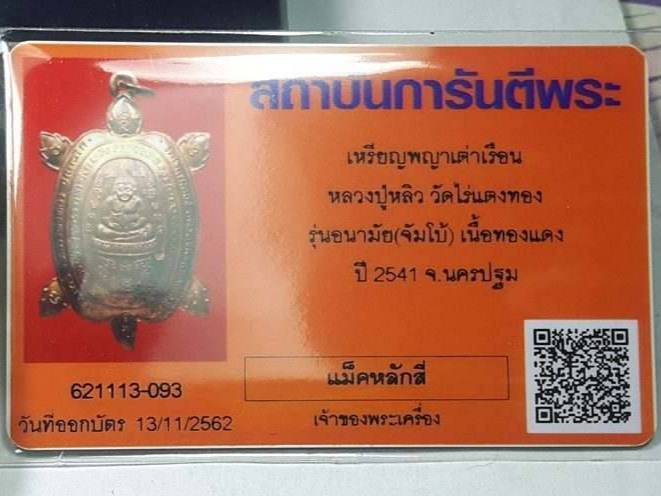 เหรียญพญาเต่าเรือน รุ่นสร้างสถานีอนามัยบ้านไร่แตงทอง (จัมโบ้) เนื้อทองแดงปี2541 หลวงปู่หลิว วัดไร่แตงทอง จ.นครปฐม*****ตัวตัดทองแดง*****