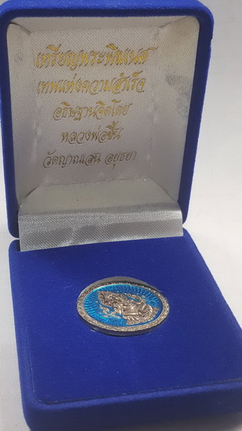 เหรียญพระพิฆเนศร์ เนื้อเงิน ลงยาสีน้ำเงิน " หลวงพ่อชื้น วัดญาณเสน " จ.อยุธยา ปี 2546 กล่องกำมะหยี่เดิม สร้างน้อย หายากมาก ( สร้างแค่ 50 เหรียญเท่านั้น ) พระพิฆเนศร์ เทพแห่งความสำเร็จ " หลวงปู่ชื่น พุทธสโร " วัดญาณเสน จ.นครศรีอยุธยา เจ้าตำราเคล็ดวิชา พระรัตนจักร อันลือลั่น ท่านเป็นอาจารย์ผู้เรืองวิชารูปหนึ่ง ช่วยเหลือชาวบ้าน รักษาโรคภัยไข้เจ็บ ด้วยน้าพระพุทธมนต์ และเป็นพระเกจิที่เชี่ยวชาญด้านไสยศาตร์วิชาอาคมและแพทย์แผนโบราณ โดยนำความรู้และวิชาทุกด้านช่วยปัดเป่าทุกข์ภัยให้กับชาวบ้านจนเป็นที่เคารพเลื่อมใสในความมีเมตตาของท่าน เป็นพระอีกรูปหนึ่งที่ชาวเมืองกรุงเก่าภาคภูมิใจอย่างยิ่ง เหรียญพระพิฆเนตรเทพแห่งความสำเร็จ หลวงพ่อชื้น พุทธสโร วัดญาณเสน ท่านอธิฐานจิตเสกให้ โดยท่านจะนำพระมาแตะแล้วเป่าที่วัตถุมงคลนั้น ๆ ให้ทางคณะชมรมศิษย์เก่าดนตรีไทยร่วมกับทางคณะศิษย์ขอร่วมสร้างไว้เพื่อบูชากันในกลุ่มลูกศิษย์ทางชมรม จึงมีจำนวนสร้างไม่มากนัก โดยมีการสร้าง เหรียญเนื้อทองคำ 9 เหรียญ เหรียญเงินลงยา 159 เหรียญ โดยแบ่งออกมีทั้งหมด 3 สี เป็น เหรียญเนื้อเงินลงยาสีเขียว 39 เหรียญ เหรียญเนื้อเงินลงยาสีน้ำเงิน 50 เหรียญ เหรียญเนื้อเงินลงยาสีแดง 70 เหรียญ และเหรียญเนื้อทองแดงเนื้อทองฝาบาตรและเนื้อทองทิพย์สร้างรวม 699 เหรียญ ( เนื้อละ 233 เหรียญเท่านั้น ) สร้างเพื่อแจกในงานประจำปี ลักษณะเหรียญทรงกลม ด้านหน้าจะเป็นพระพิฆเนศร์ ปางประทานพร ด้านหลัง ยันต์ โอม ศรี คเณศายะ นะมะฮา เป็นบทสวดบูชาขอพรขอความสำเร็จในด้านต่างๆ มีโชค และมีทรัพย์เงินทอง สมความสำเร็จทุกปรารถนา