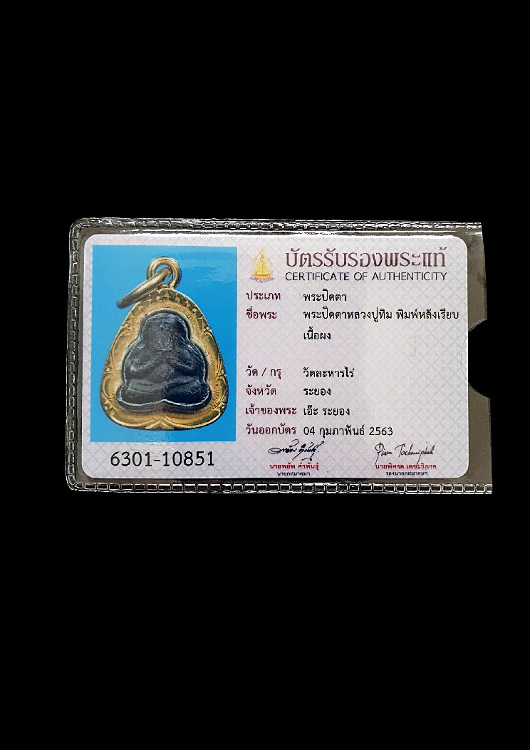 พระปิดตาเนื้อผงดำหลังรูปเหมือน(หลังเลียบ)หลวงปู่ทิม วัดละหารไร่ จ.ระยอง ปี2518 เนื้อดำผงวัดสุทัศน์เข้มข้นผสมผงพรายกุมาร จำนวนสร้างน้อยมากครับ ลูกศิษย์เจตนาทำไว้ใช้และแจกให้คนใกล้ชิด ผ่านการปลุกเสกจากหลวงปู่ทิมแน่นอนครับ เลี่ยมทองใช้มาแต่เดิม พระองค์นี้ส่งออกบัตรเวปจีแล้ว แต่ทางเวปไม่สรุปผลเนื่องจากข้อมูลไมเพียงพอ แต่ออกบัตรเปอร์เซ็นทองให้ครับ เพื่อความเป็นไปตามหลักสากล จึงส่งเข้าสมาคมฯ และบัตรออกพระแท้ตามมาตรฐานแน่นอนหายห่วงได้เลยจ้า