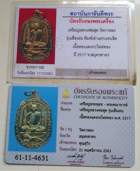 เหรียญกะไหล่ทอง พร้อมบัตร สองสถาบัน บัตรการันตี และบัตรสมาคมพระเครื่อง อาคารพันธ์ทิพย์ งามวงศ์วาน
