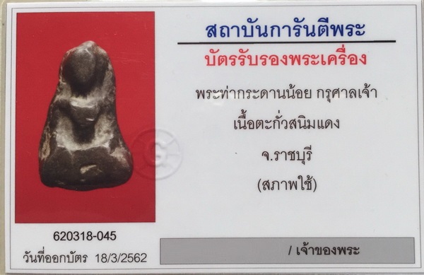 พระท่ากระดานน้อย. กรุศาลเจ้า. เนื้อตะกั่วสนิมแดง. จ. ราชบุรี. พร้อมใบรับรองจีพระครับ