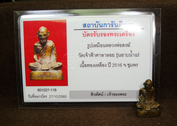รูปเหมือนหลวงพ่อสงฆ์ วัดศาลาลอย จ.ชุมพร รุ่นอาบน้ำแร่ ปี 2516 พร้อมบัตรรับรอง