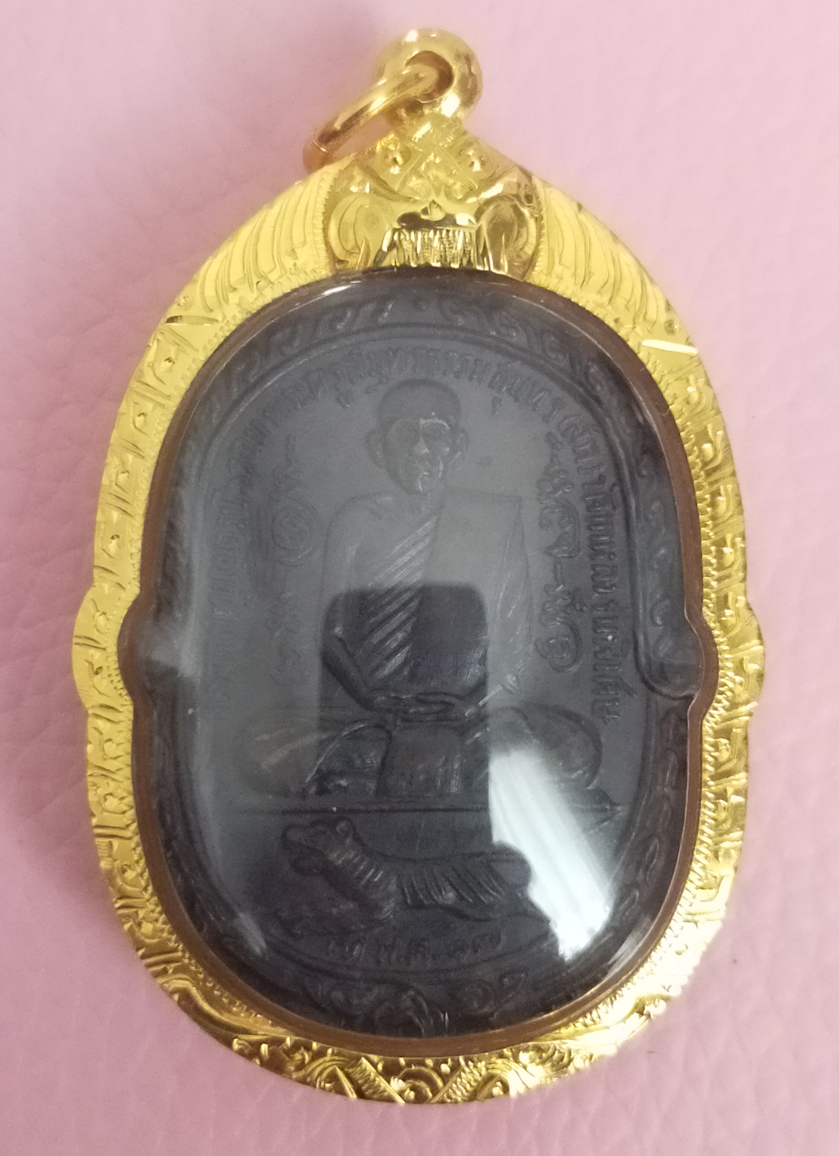 หลวงพ่อสุด วัดกาหลง รุ่นเสือเผ่น พิมพ์เข่าแตกแขนขีด เนื้อทองแดง (วัดศาลาครืนสร้าง) เลื่ยมทอง พร้อมบัตรการันตีฯ