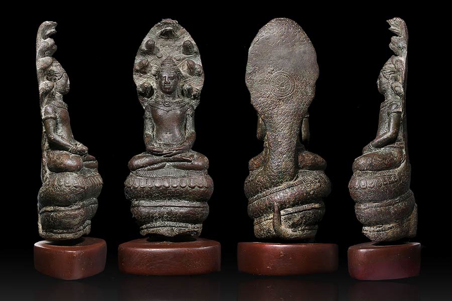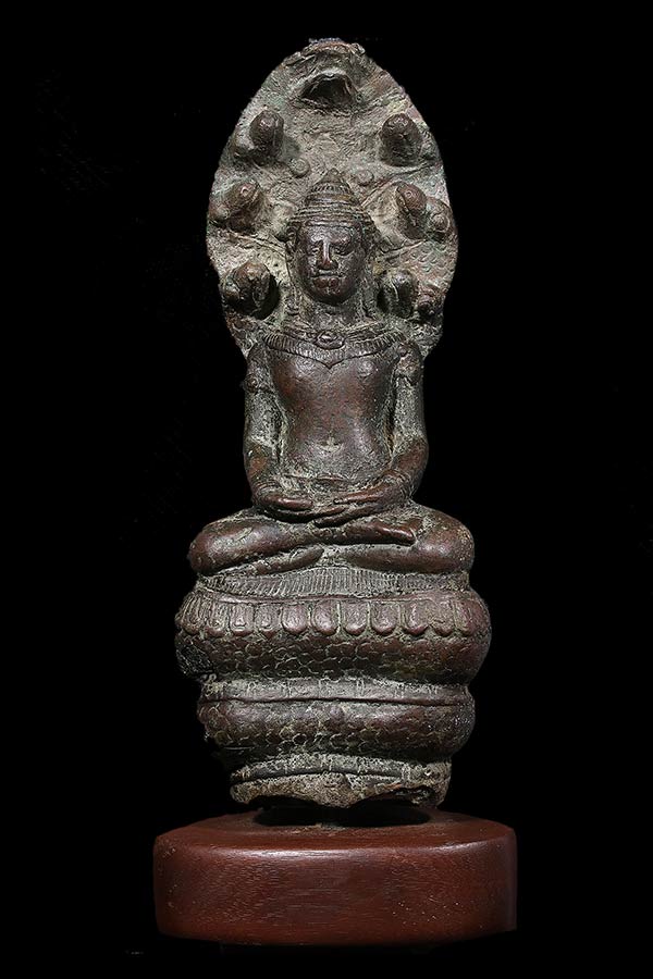 @@@ เทวรูป พระร่วงทรงนาคปรก เนื้อสำริด (เขมรผมมวยหายาก)ขนาดหน้าตัก 2.4 นิ้ว สภาพสมบรูณ์มาก อายุ 800 ปี สวยงามมาก จากลพบุรี สุดยอดหายากน่าจะอยู่ในชุดนารายณ์ทรงปืน ขนาด ฐาน 7 CM ฐานไม้ 7.5 CM สูง 19.5 CM หายากมากๆ