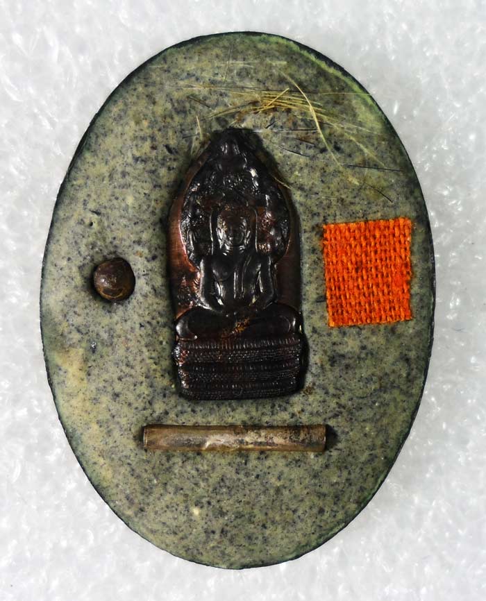 (ฝังตะกรุด 1 ดอก ,ปรกองค์น้อยสุทันโต , เม็ดพญาเหล็ก จีวรและเกศาพ่อท่าน)