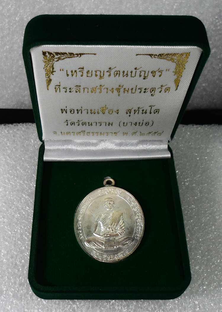 @เหรียญปั๊มกระบอกห่วงเชื่อม รุ่น รัตนบัญชร (เหรียญไฟลุก) พ่อท่านเชื่อง วัดรัตนาราม (บางบ่อ) จ.นครศรีธรรมราช เนื้อเงินหลังยันต์ เลข ๑๗ พร้อมกล่องเดิม@ พ่อท่านนั่งปรก ในวันที่ 19 มีค 2558 ข้อมูลเพิ่มเติมตามลิ้งค์ครับ https://www.g-pra.com/webboard/show.php?Category=publicize&No=495708