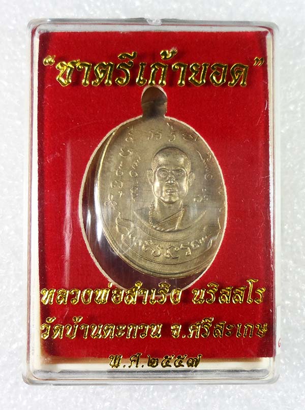 $เหรียญปั๊มกระบอกหูเชื่อม ชาตรีเก้ายอด หลวงพ่อสำเริง วัดบ้านตะกวน จ.ศรีสะเกษ ปี ๒๕๕๗ เนื้ออัลปาก้าหลังเรียบจาร เลข ๗๓ พร้อมกล่องค่ะ$ รายละเอียดเพิ่มเติมตามลิ้งค์ค่ะ https://www.g-pra.com/webboard/show.php?Category=publicize&No=471084