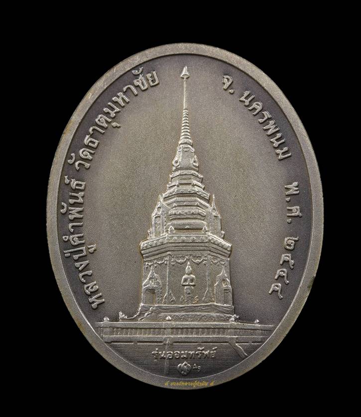 เหรียญเนื้อเงิน รุ่นออมทรัพย์ หลวงปู่คำพัน โฆสปัญโญ วัดธาตุมหาชัย นครพนม