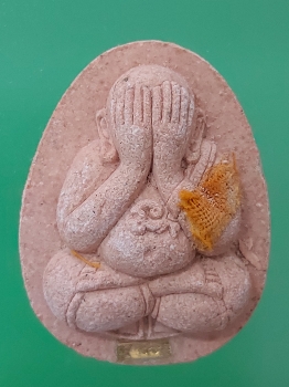 พระปิดตาสาระพัดดี เนื้อกระเบื้องหลังคาโยสถ์ ฝังตะ