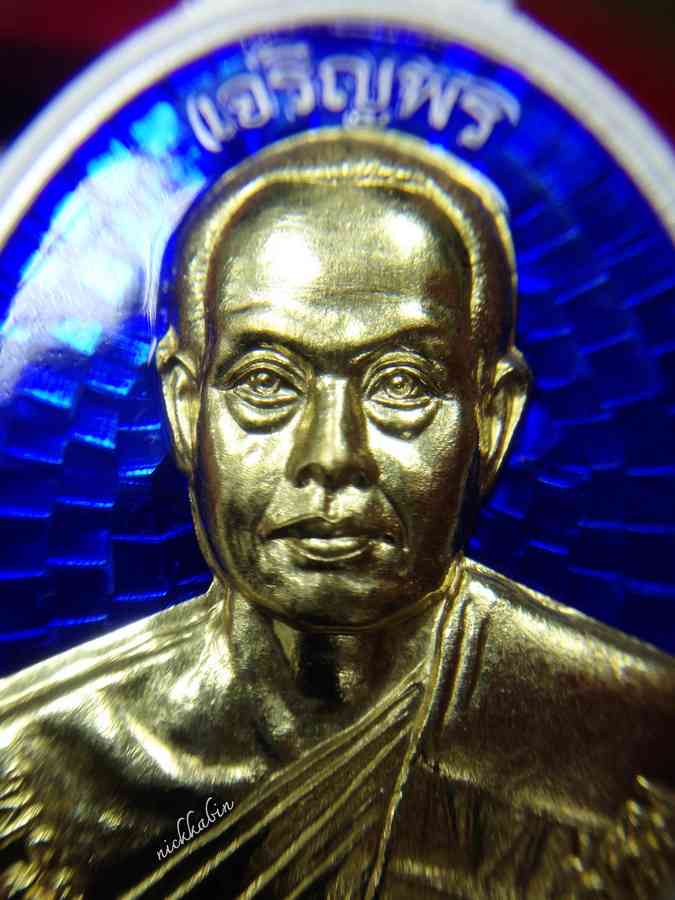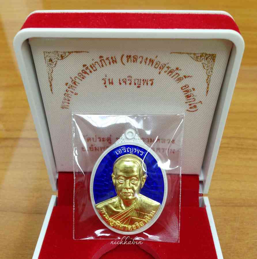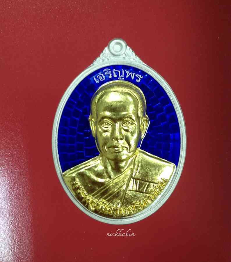 หรียญเจริญพร - ครึ่งองค์ - เนื้อเงิน หน้ากากทองคำ ลงยาน้ำเงิน พระภาวนาวิสุทธิโสภณ เจ้าคณะจังหวัดสมุทรสงคราม (พระมหาสุรศักดิ์) วัดประดู่ พระอารามหลวง สร้าง พ.ศ. 2558 สมัยท่านครองสมณศักดิ์ พระครูพิศาลจรินาภิรม -- เนื้อเงิน หน้ากากทองคำ ลงยาน้ำเงิน -- (สร้าง 299 เหรียญ) -- องค์นี้เลข 204 -- พร้อมกล่องเดิม