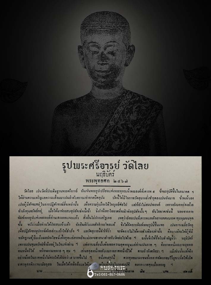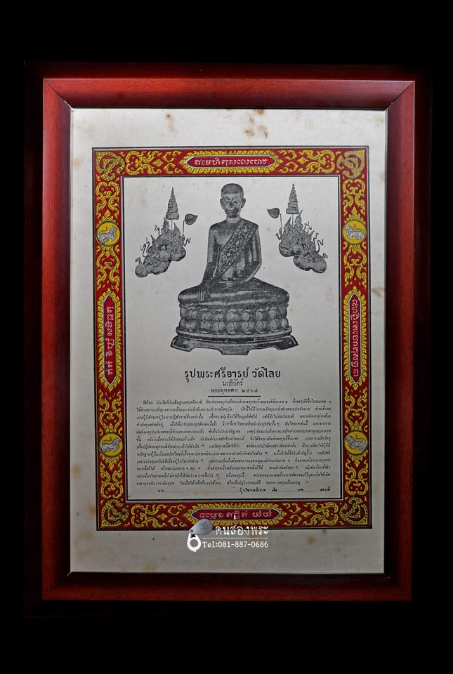 กระดาษพิมพ์หินใบนฤธิบัตรพระศรีอาริย์ วัดไลย์ ลพบุร