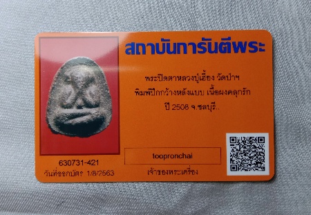 ปิดตาหลวงปู่เฮี้ยง วัดป่า พิมพ์ปีกกว้างหลังแบบ เนื้อผงคลุกรัก ปี08 สวยเดิมๆเลยครับ พร้อมบัตรรับประกันจากทางเว็บ