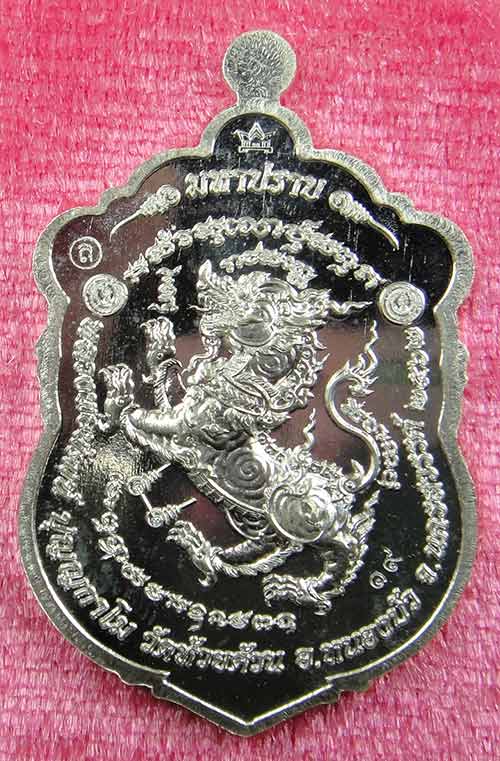 เหรียญเสมาสิงห์มหาปราบ เนื้อเงินลงยาสีชมพู เลข๑๙