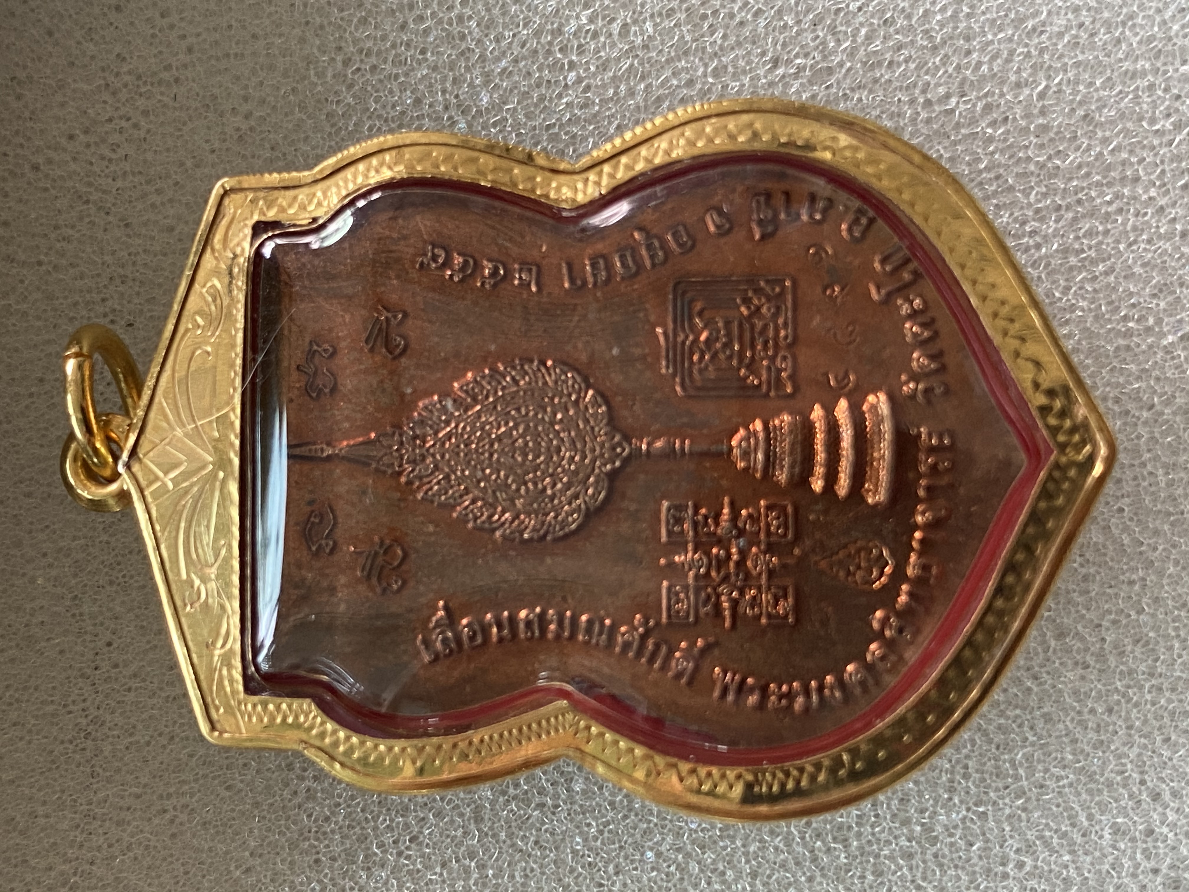 เหรียญเลื่อนสมณศักดิ์ ลงยาน้ำเงิน หลวงพ่อรวย วัดตะโก อยุธยา เลี่ยมทองแท้ยกซุ้มหัวสิงห์