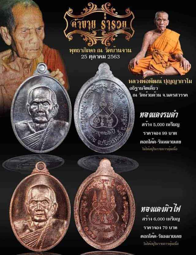 เหรียญตอก 1 ย้อนยุค หลวงปู่หมุน ฐิตสีโล วัดบ้านจาน รุ่นค้าขายร่ำรวย เนื้อทองแดงผิวไฟ ตอกโค้ด ยิงเลข ปี 2563 หลวงพ่อพัฒน์ วัดห้วยด้วน ปลุกเสก สร้างเพียง 5,000 เหรียญ ปลุกเสกสองวาระ วาระที่ 1 ณ อุโบสถวัดบ้านจาน วีนที่ 25 ตุลาคม 2563 วาระที่ 2 ณ วัดห้วยด้วน จังหวัดนครสวรรค์ โดย หลวงพ่อพัฒน์ ปุญญกาโม (พระครูนิวิฐปุญญากร)