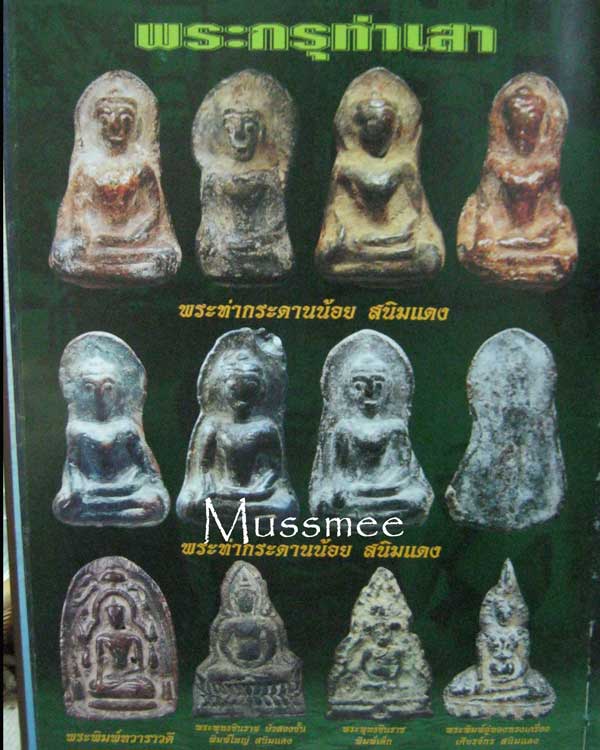 พระท่ากระดานน้อย กรุท่าเสา พระกรุวัดท่าเสา เป็นวัดพื้นที่ ต.ลาดหญ้า เมื่อ พ.ศ. ๒๕๐๗ มีการขุดฐานพระเจดีย์องค์หนึ่ง พบพระท่ากระดานจำนวนหนึ่ง ซึ่งมีไม่มากนัก รวมทั้งยังพบพระพิมพ์อื่นๆ อีกหลายพิมพ์ ที่มีมากสุดคือ พระท่ากระดานน้อย พุทธลักษณะ พระท่ากระดานน้อย กรุท่าเสา เป็นพระปางมารวิชัย ประทับนั่งลอยองค์ โดยไม่มีเส้นฐานรองรับแต่อย่างใด รายละเอียดบนพระพักตร์ปรากฏชัดเจนทุกอย่าง ทั้งพระเนตร พระขนง พระโอษฐ์ และพระนาสิก นอกจากนี้ขอบองค์พระยังปรากฏปีกด้านข้างทุกองค์ ทั้งประเภทปีกกว้าง และปีกชิด เป็นพระเนื้อชินสนิมแดง คล้ายกับ พระกรุศาลเจ้า จ.ราชบุรี แต่ลักษณะสนิมแดงของพระกรุวัดท่าเสา จะดูแดงเข้มจัด และไขมันกว่าของวัดศาลเจ้า ตามหลักฐานที่ขุดพบสันนิษฐานว่า พระท่ากระดานน้อย เป็นพระที่สร้างขึ้นภายหลัง พระท่ากระดาน พิมพ์ใหญ่ พระกรุท่าเสา นอกจากขุดพบพระท่ากระดาน พระท่ากระดานน้อย แล้ว ยังพบพระพิมพ์อื่นๆ อีกหลายพิมพ์ อาทิ พระพิมพ์อู่ทอง พระท่ากระดานหูช้าง เป็นต้น แต่ละพิมพ์ล้วนมีศิลปะแบบอู่ทอง ทั้งสิ้น ขนาดของ พระท่ากระดานน้อย กรุท่าเสา กว้างประมาณ ๑.๒ ซม. สูง ๒.๒ ซม. พุทธคุณ ยอดเยี่ยมทางแคล้วคลาด และคงกระพันชาตรี สนนราคาเช่าหาอยู่ที่หลักหมื่นต้น ถ้าสภาพสวยแชมป์ อาจจะสูงถึงหลักหมื่นกลาง พระท่ากระดานน้อย กรุท่าเสา เป็นพระที่มีจำนวนมากพอสมควร ในท้องตลาดถือเป็นพระชุดเล็ก เนื้อสนิมแดง ที่น่าสนใจ และที่สำคัญคือยังพอหาเช่าบูชาได้ได้ไม่ยากนัก โดยเฉพาะในพื้นที่บ้านเดิมของเมืองกาญจนบุรี