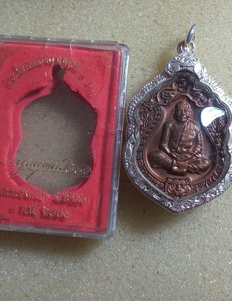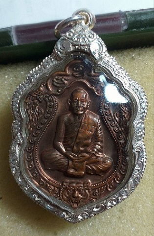 เหรียญเสมาหลวงพ่อสาคร วัดหนองกรับ เลี่ยมเงินอย่างดี ทองแดงผสมชนวนเจาะห่วง