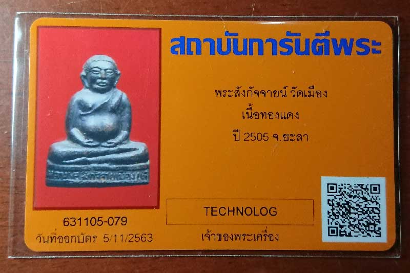 ในปี2505 เป็นปีที่สำคัญของ วัดเมืองยะลา ที่ได้เริ่มจัดสร้างวัตถุมงคลหลวงปู่ทวด เหยียบน้ำทะเลจืดเป็นครั้งแรก พร้อมกับพระสังกัจจายน์และ พระพิมพ์สมเด็จฯ โดยมีท่านพระอาจารย์ทิม ธัมมธโร แห่ง วัดช้างให้ จ.ปัตตานี พ่อท่านฉิ้น โชติโก และบรรดาคณะกรรมการได้ทำพิธีบวงสรวงต่อดวงวิญญาณหลวงปู่ทวดเหยียบน้ำทะเลจืด แล้วประกอบพิธีพุทธาภิเษกขึ้นที่วัดช้างให้ จ.ปัตตานี เมื่อวันที่ 19 พฤษภาคม 2505 (วันเพ็ญเดือน 6 ปีขาล) พระพิมพ์พระสังกัจจายน์ พระพิมพ์นี้มีพุทธคุณทางเมตตา โชคลาภ องค์ที่นำมาลงสภาพสวยมากรมดำเดิมๆ กริ่งดังดี รับประกันแท้ตลอดชีพ