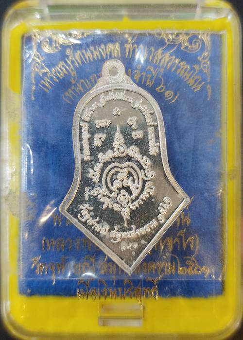 เหรียญจำปีหน้าเทพรุ่นแรก หลวงพ่ออิฎฐ์ วัดจุฬามณี จัดสร้างปี 2561 วัตถุประสงค์เพื่อจัดสร้างพระเมรุ องค์นี้เป็นเนื้อเงิน จำนวนการสร้างแค่ 1000 เหรียญ เหรียญนี้เลข873 พระผิวเดิมๆ สภาพสวยมือหนึ่ง มาพร้อมกล่องเดิม