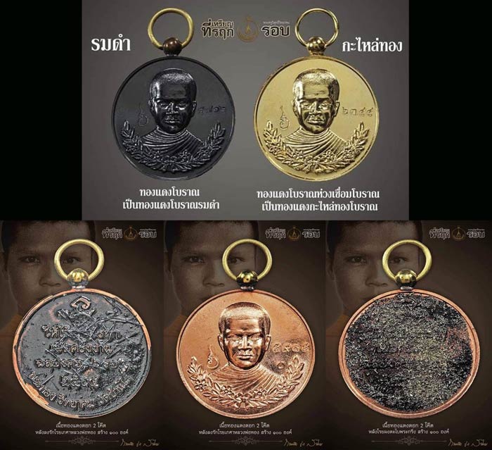 ที่ระฤกครบ6รอบ เหรียญกลม หน้าหนุ่ม ขอบกระบอก ห่วงตุ้ม มีทั้งหมด 3 เนื้อทองแดงรมดำสร้าง5800เหรียญ,ผิวไฟหลังอุดยางรัก และชนวนพระกริ่ง สร้างอย่างละ100เหรียญ,กะไหล่ทองสร้าง1200เหรียญชีลเดิมลุ้นเนื้อลุ้นเลขสวย กล่องกำมะหยี่ทุกเหรียญ