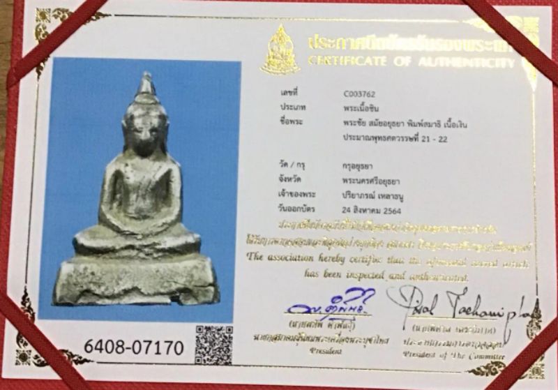 พระชัย สมัยอยุธยา พิมพิ์สมาธิ เนื้อเงิน สร้างช่วงป