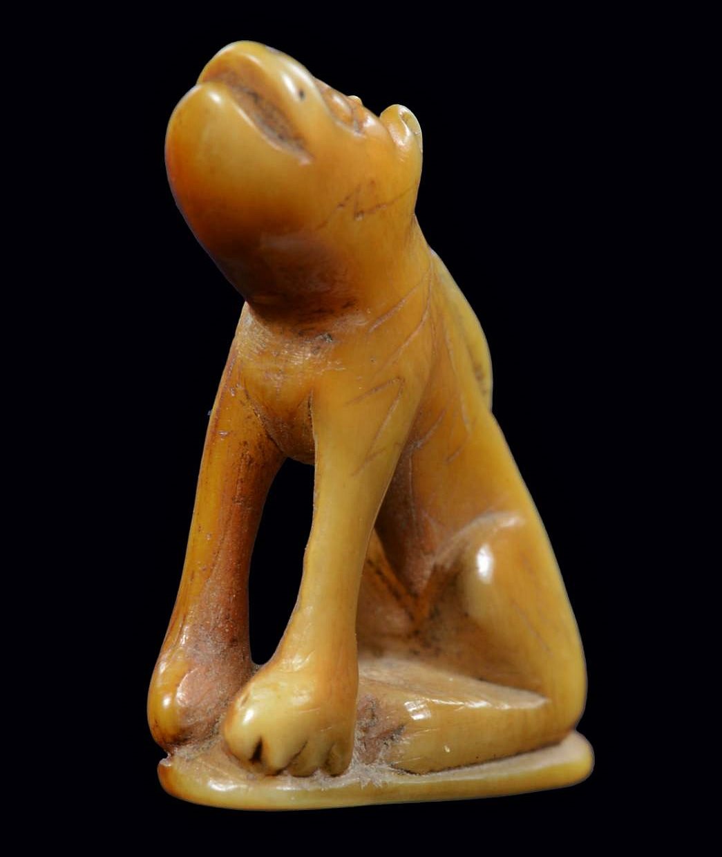 เสือโห่ตาลูกเต๋า หลวงพ่อปาน วัดคลองด่าน ศิลป์วัดกลาง แกะจากเขี้ยวซีก จารยันต์กอหญ้าใต้ฐาน