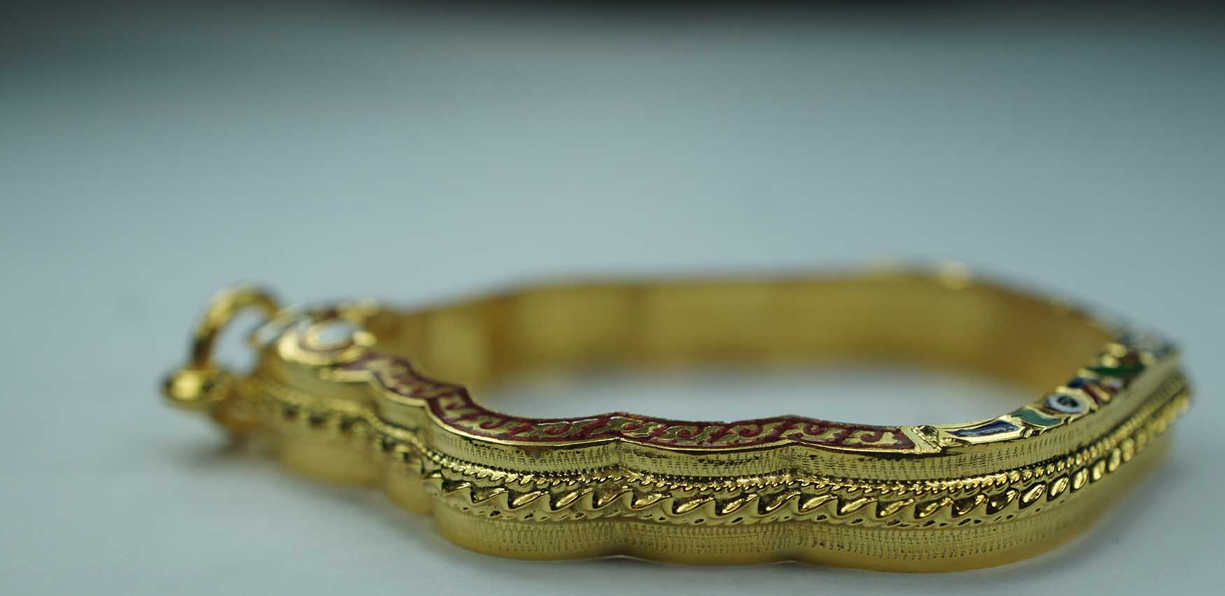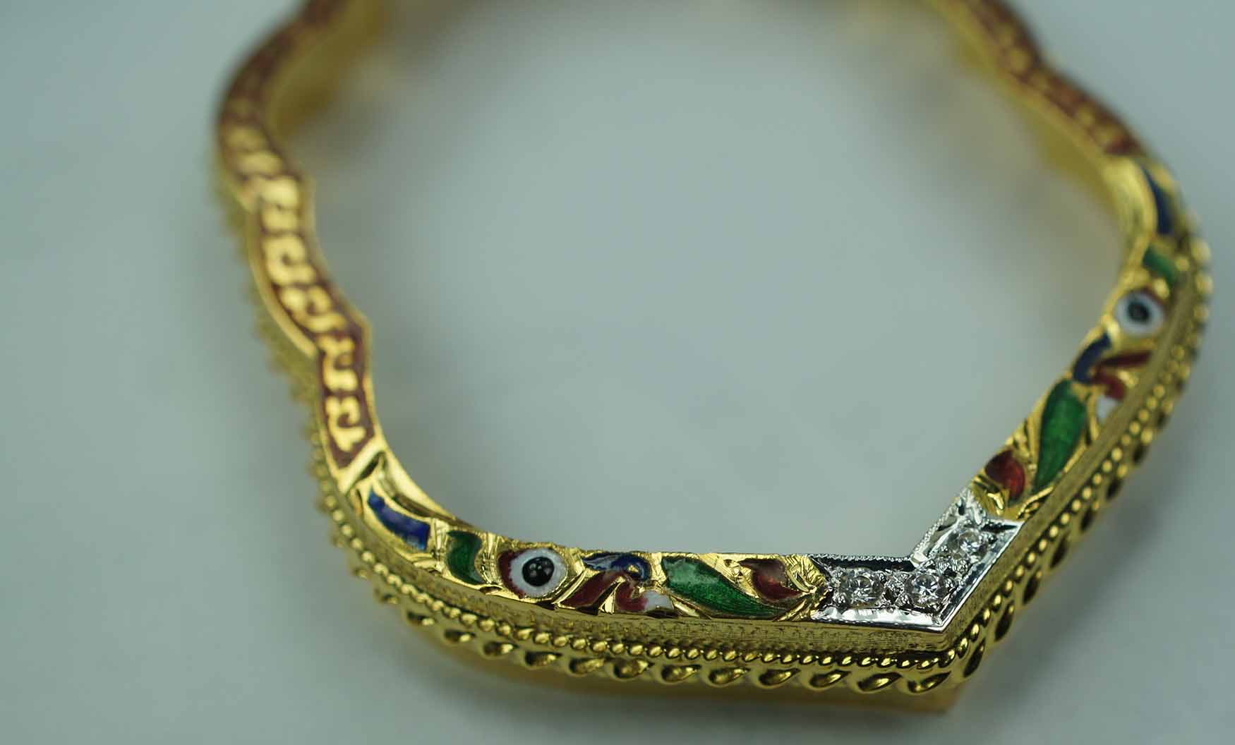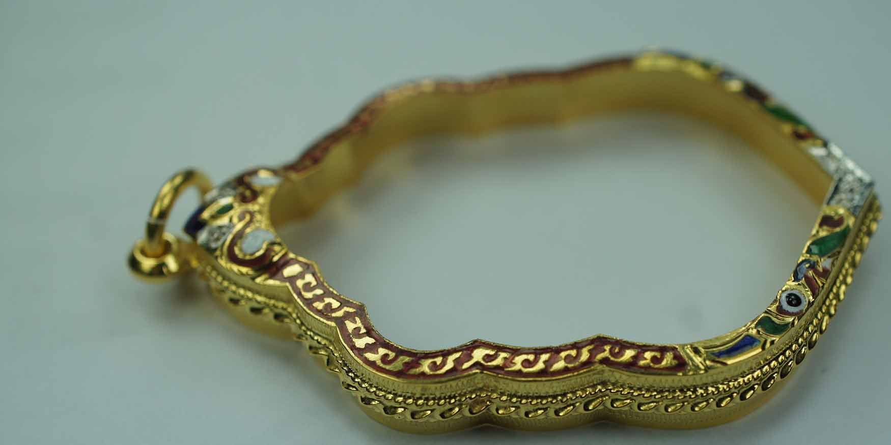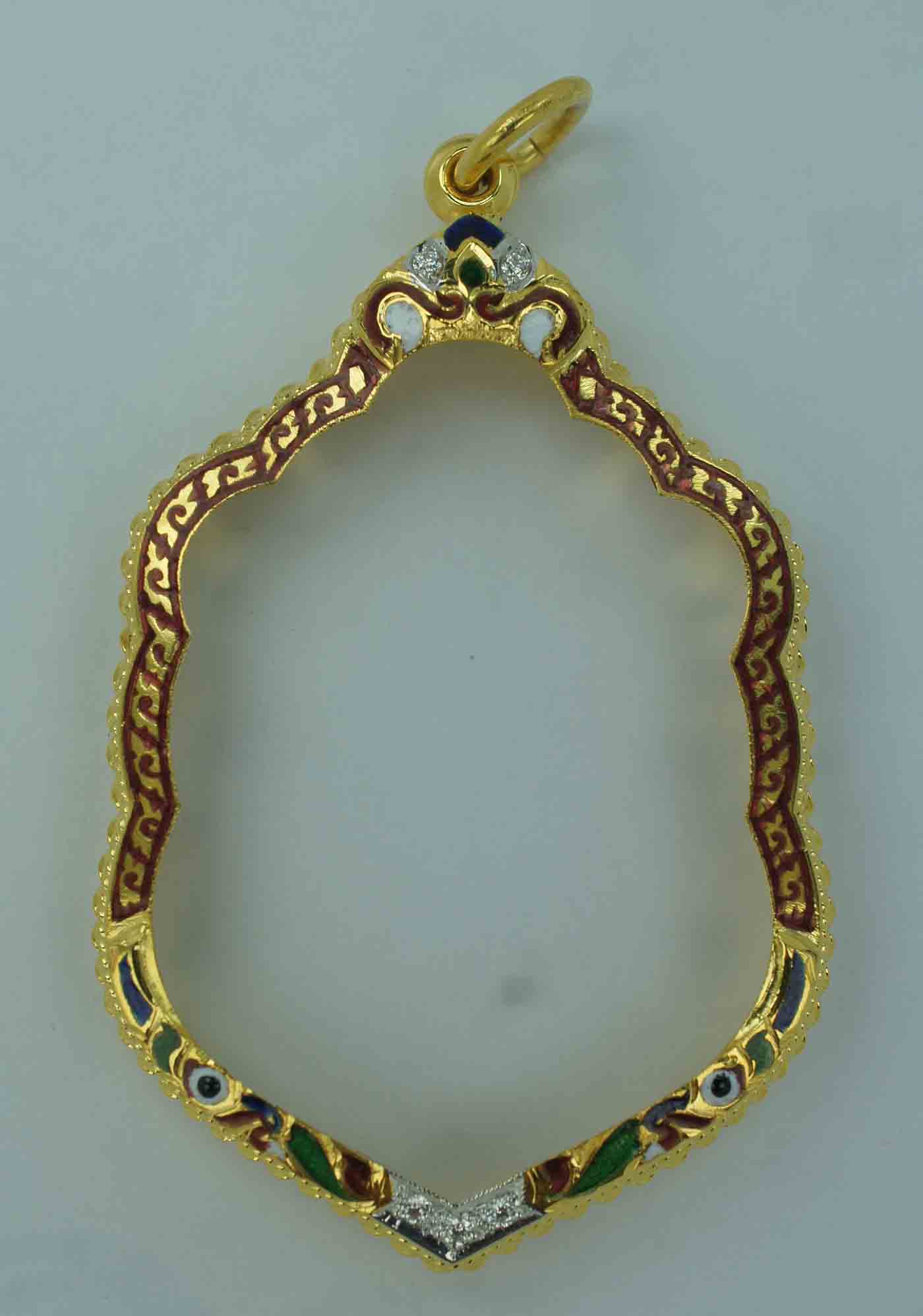กรอบทองคำ ยกซุ้ม หัวสิงห์ ลงยาล้อม ฝังเพชร CZ 5 เม
