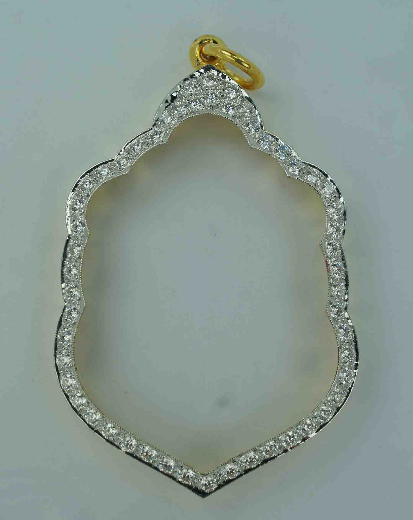 กรอบทองคำ ฝังเพชร CZ 53 เม็ด ชุบหน้าขาว แกะลายทั้