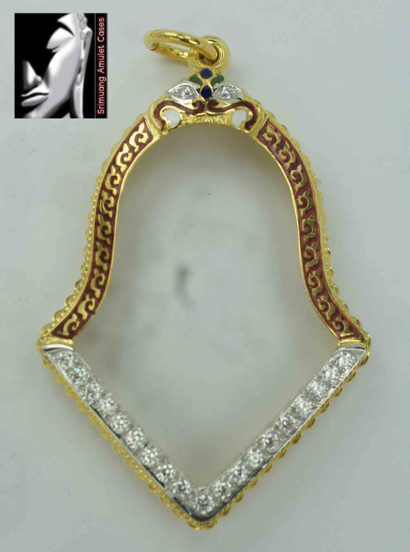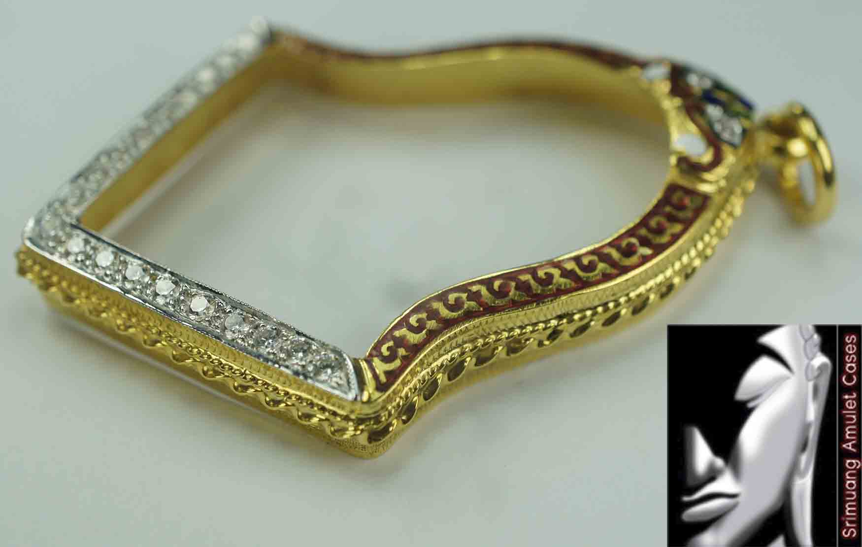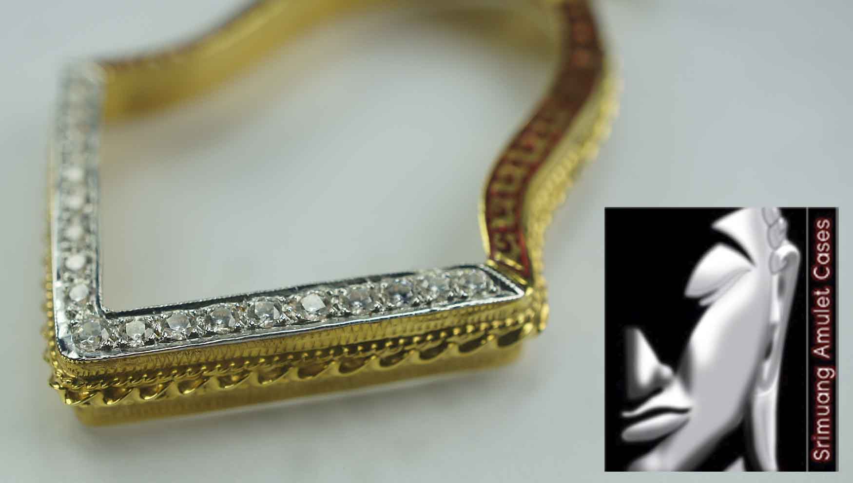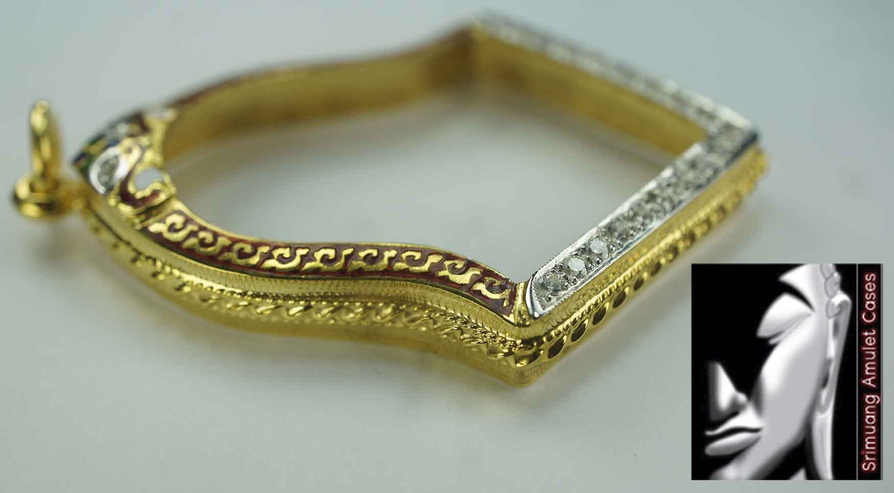 กรอบทอง ยกซุ้ม หัวสิงห์ ฝังเพชร CZ 22 เม็ด ข้างเกล
