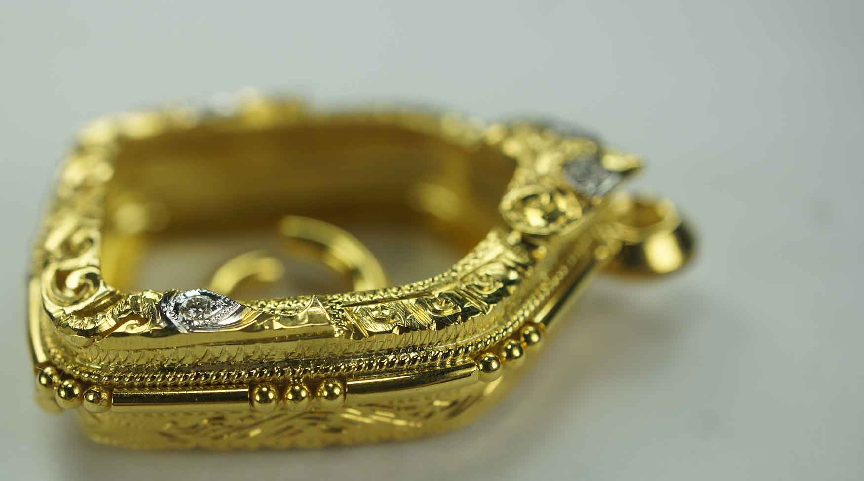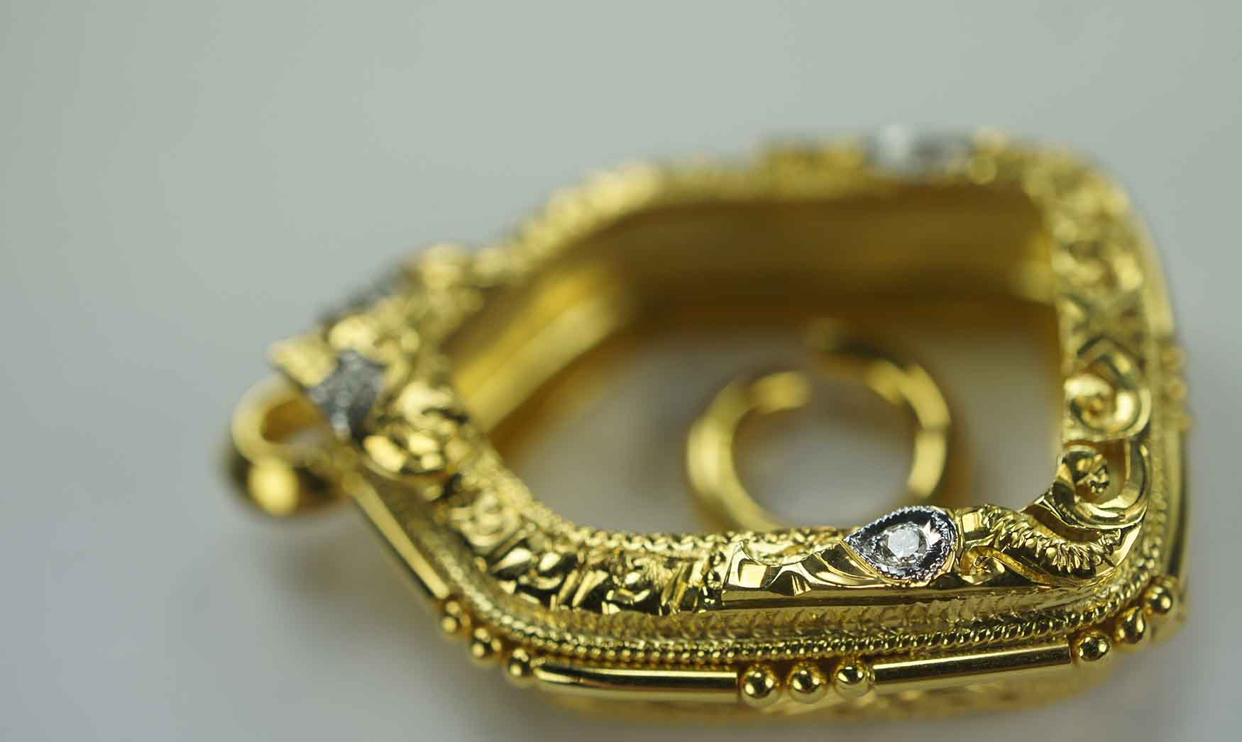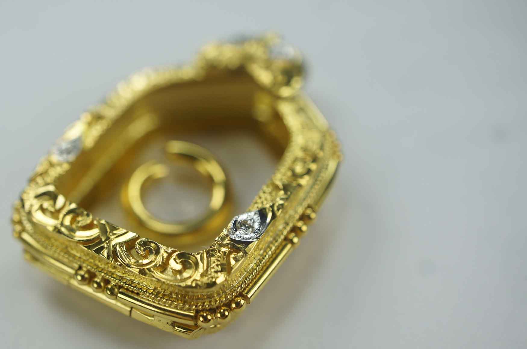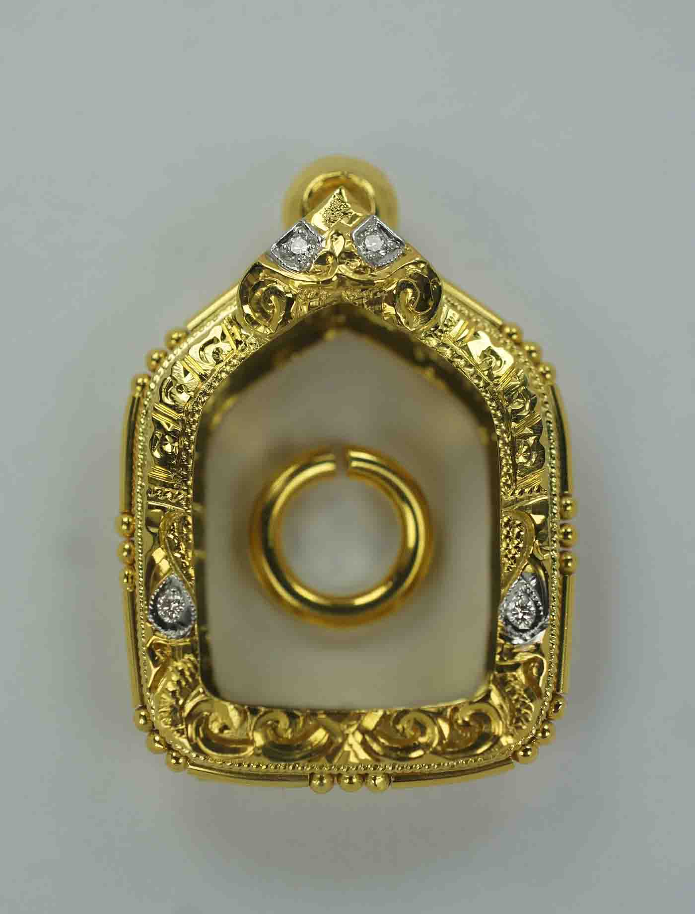 งานตลับกรอบทอง ยกซุ้ม หัวสิงห์ ฝังเพชรแท้เบลเยี่ยม