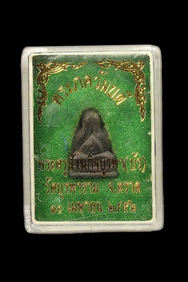 พระปิดตามงคลมหาเศรษฐีรุ่นแรก หลวงปู่บัว วัดศรีบุรพาราม จ.ตราด จัดสร้างปี 2552 เป็นพระปิดตาหล่อดินไทยแบบโบราณ พุทธาภิเษกโดยพระครูสังฆกิจบูรพาหรือหลวงปู่บัว อ.ชินพร สุขสถิตย์ ศิษย์เอกหลวงปู่ทิม อิสริโก พระปิดตารุ่นนี้ ประสบการณ์สูงสร้างน้อยหายาก องค์นี้เนื้อนวะก้นอุดผง ตอกโค๊ตอุ ปัจจุบันหายากขึ้นเรื่อยๆค่ะ