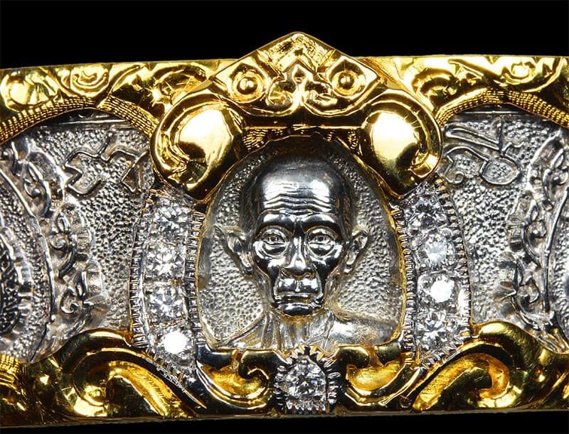 สร้อยข้อมือ หลวงพ่อรวย วัดตะโก รุ่นเลื่อนสมฯศักดิ์ เนื้อเงิน ขนาด 4 บาท เลี่ยมทองฝังเพชรแท้ ปี2559