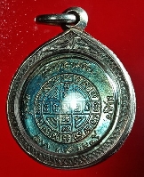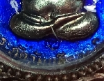 เหรียญปิดตามังกรคู่เนื้อทองแดงกะไหล่เงินลงยาสีน้ำเงิน หลวงปู่โต๊ะ ออกที่วัดศาลาครืน สภาพสวย เห็นนิ้วมือชัดเจนครบทั้ง10นิ้ว เม็ดพระศกชัด ตอกโค้ดที่พื้นใต้องค์พระ เหรียญผิวสวยเดิม