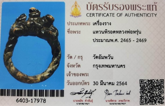 แหวนพิรอดเก้ายอด หลวงพ่อหรุ่น วัดอัมพวัน ปี 2465 -