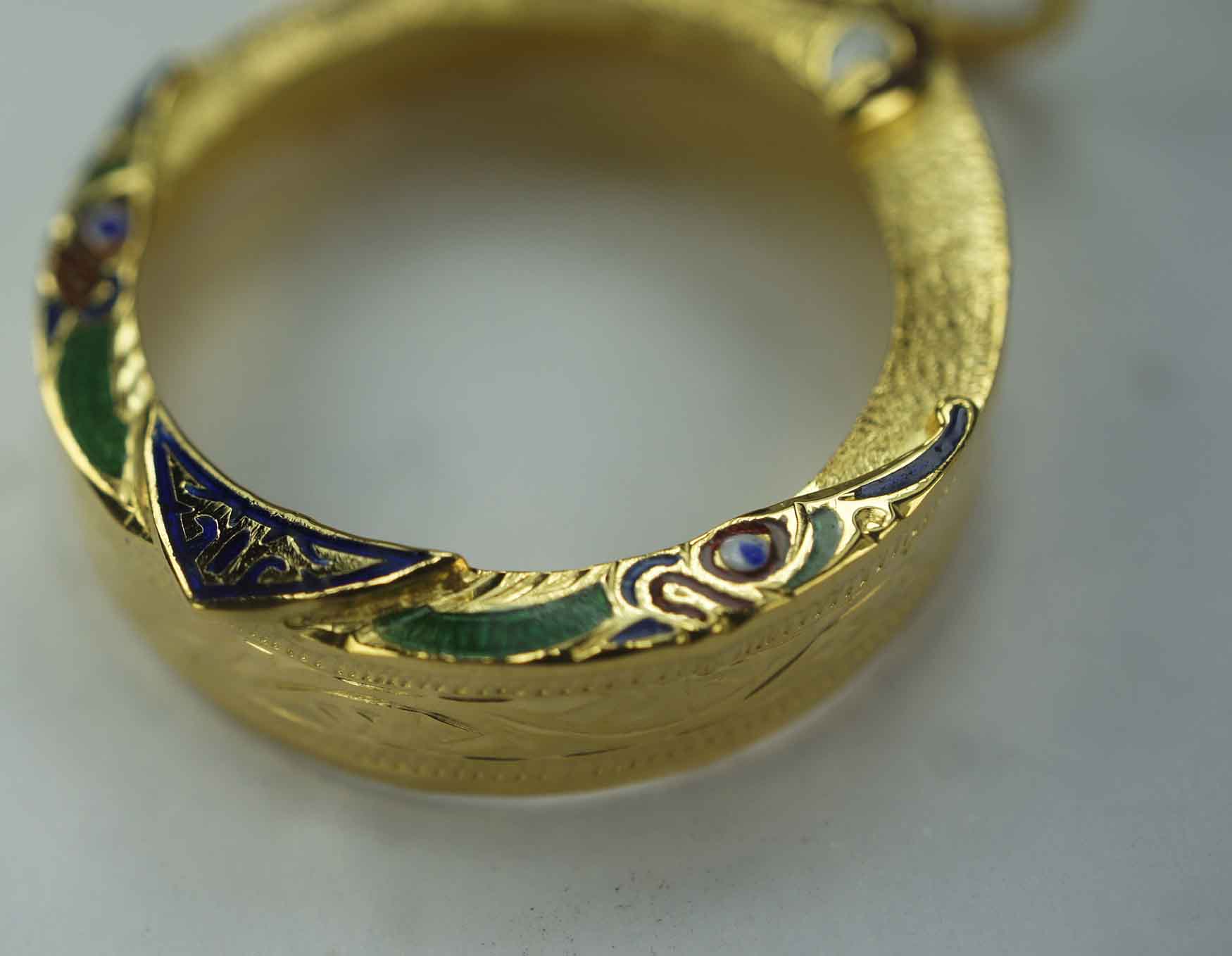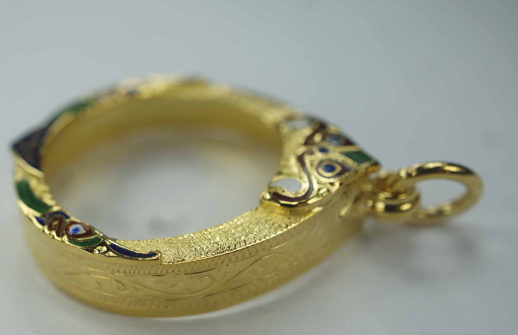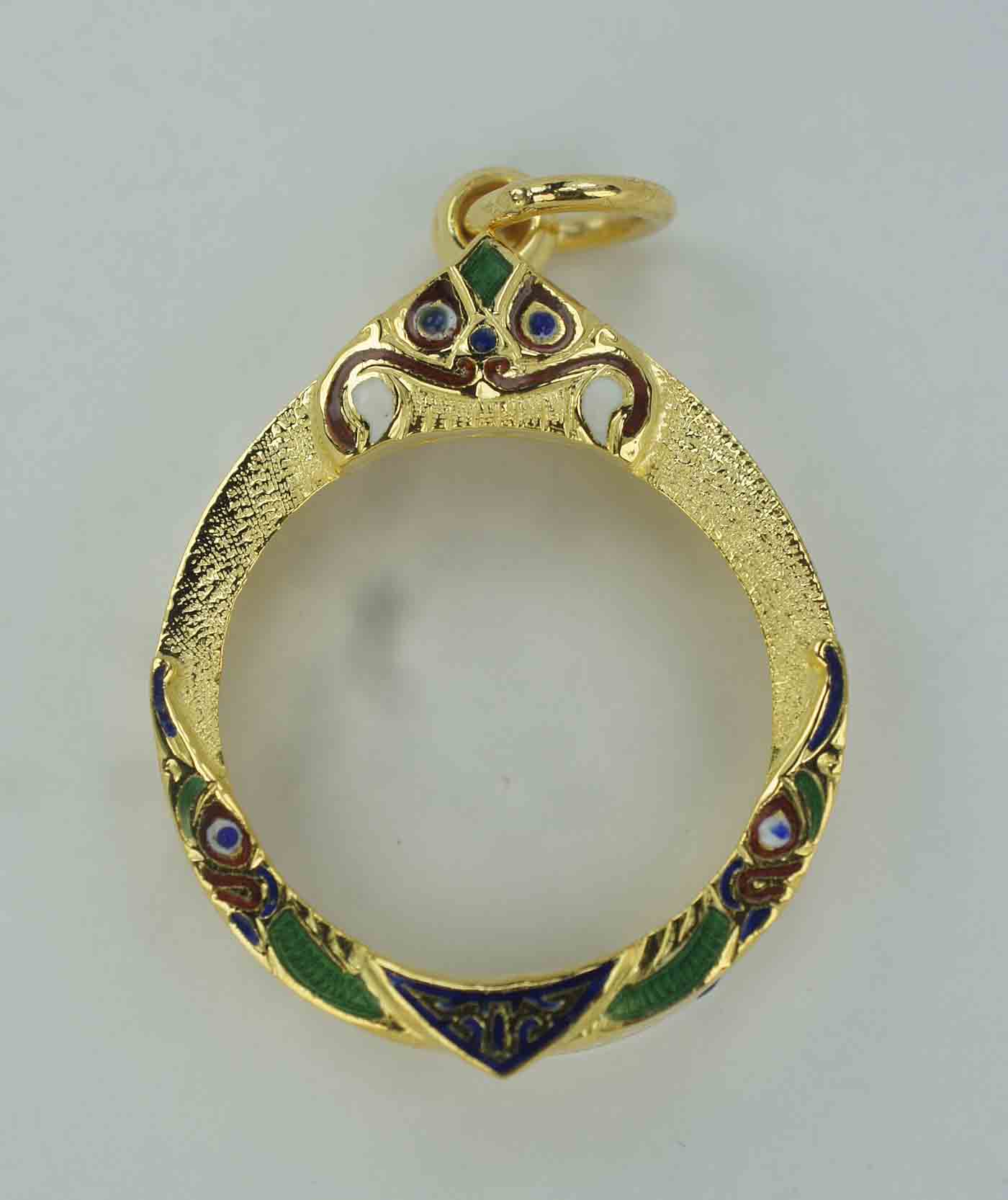 กรอบทองคำ ทรงกลม ยกซุ้ม หัวสิงห์ ลงยา หน้ายับทราย