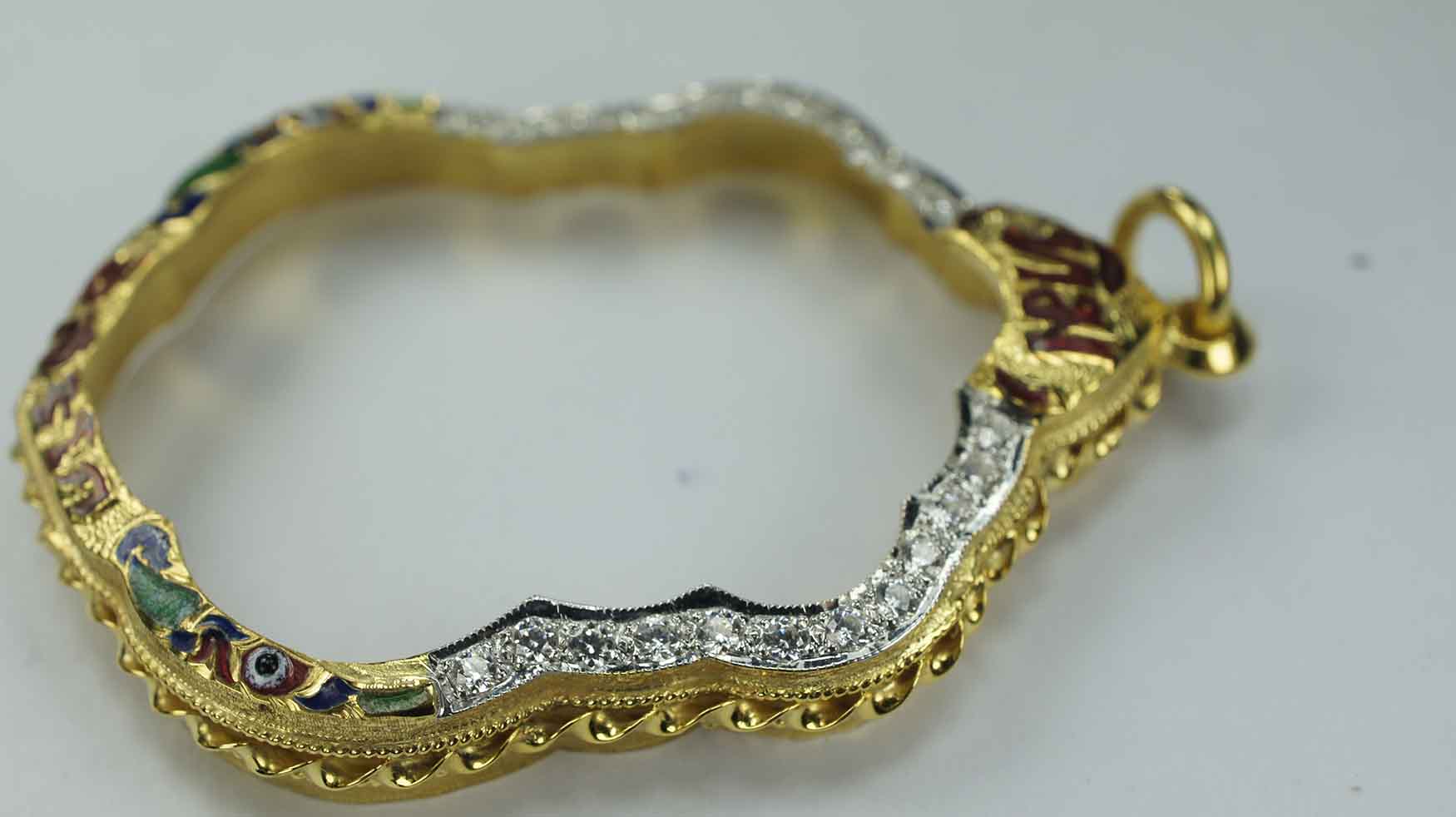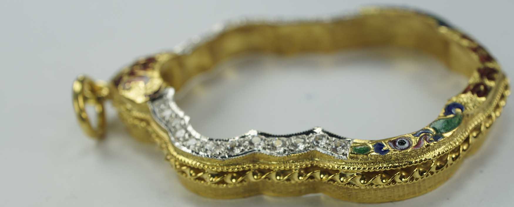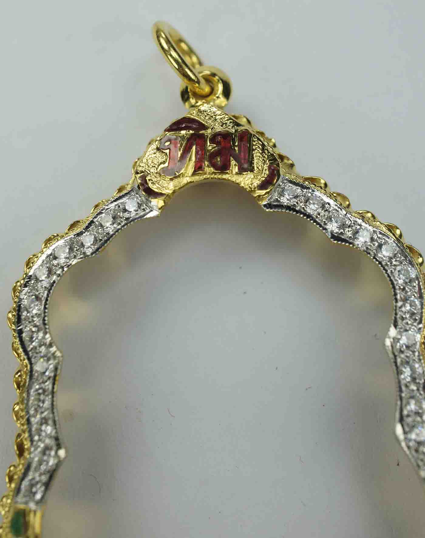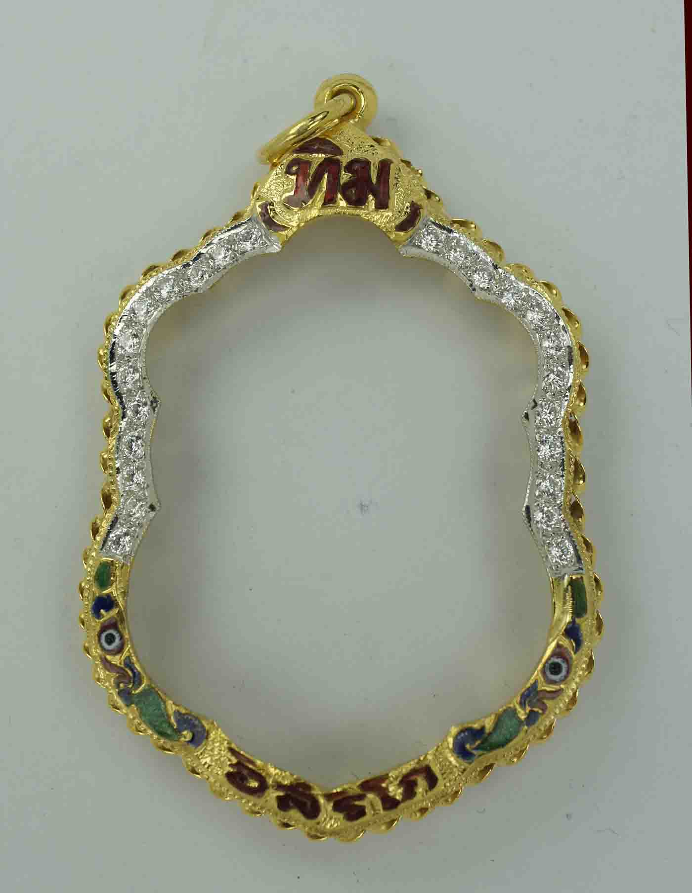 กรอบทอง ใส่เหรียญ เสมา ยกซุ้ม หัวสิงห์ ลงยาล้อม ฝั