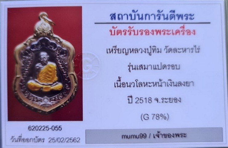 เหรียญเสมาแปดรอบ หลวงปู่่ทิม นวะหน้าเงินลงยาสามสี พร้อมเลี่ยมทองอย่างดี พร้อมบัตรรับรอง สภาพสวยเดิม ประกวดได้เลยครับ..ลงยาเต็มสวยเดิมมากๆ เลี่ยมทองหนาตีเกลียวไข่ปลาอย่างดีพร้อมใช้เลยครับ รับประกันตามมาตราฐานสากลครับ