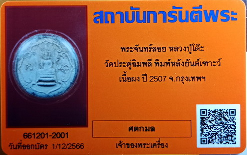 พระพิมพ์จันทร์ลอย หลังยันต์เฑาะ หลวงปู่โต๊ะ ปี 2507 พระแช่น้ำมนต์นานมาก ตะกอนในบาตรน้ำมนต์จับองค์พระหนามากๆ คราบตะกอนน้ำมนต์ลักษณะนี้จะพบในพระ13พิมพ์แรก ซึ่งหายากมาก