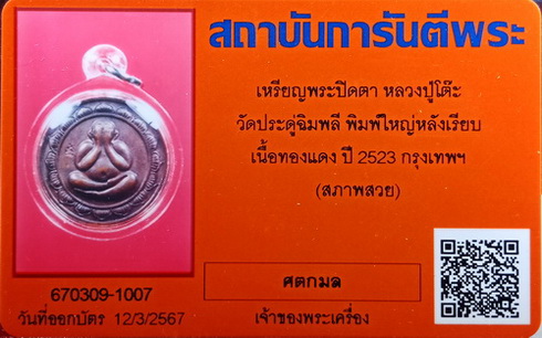 เหรียญพระปิดตาพิมพ์ใหญ่ ลป.โต๊ะ ปี23(สภาพสวย)