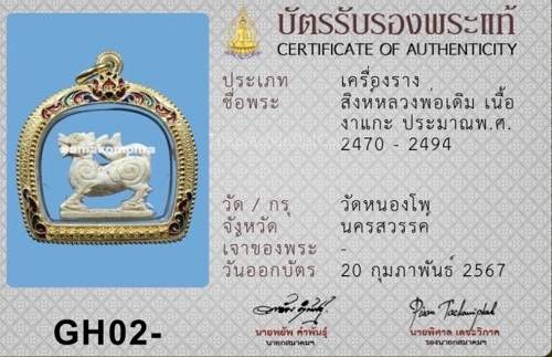 ตัวจริงเสียงจริง ครับ สภาพสวยมาก100% ไม่ผ่านการใช้ สีงาออกขาว แชมป์เท่านั้นครับ เลื่ยมทองสุโขทัยอย่างงาม มาพร้อมบัตรสมาคมฯ และเป็นองค์ดาราหนังสือสิงห์สยามเล่ม4