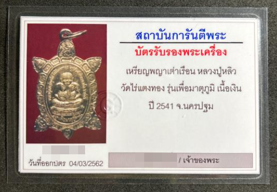 เหรียญพญาเต่าเรือน หลวงปู่หลิว วัดไร่แตงทอง รุ่นมาตุภูมิ เนื้อเงิน