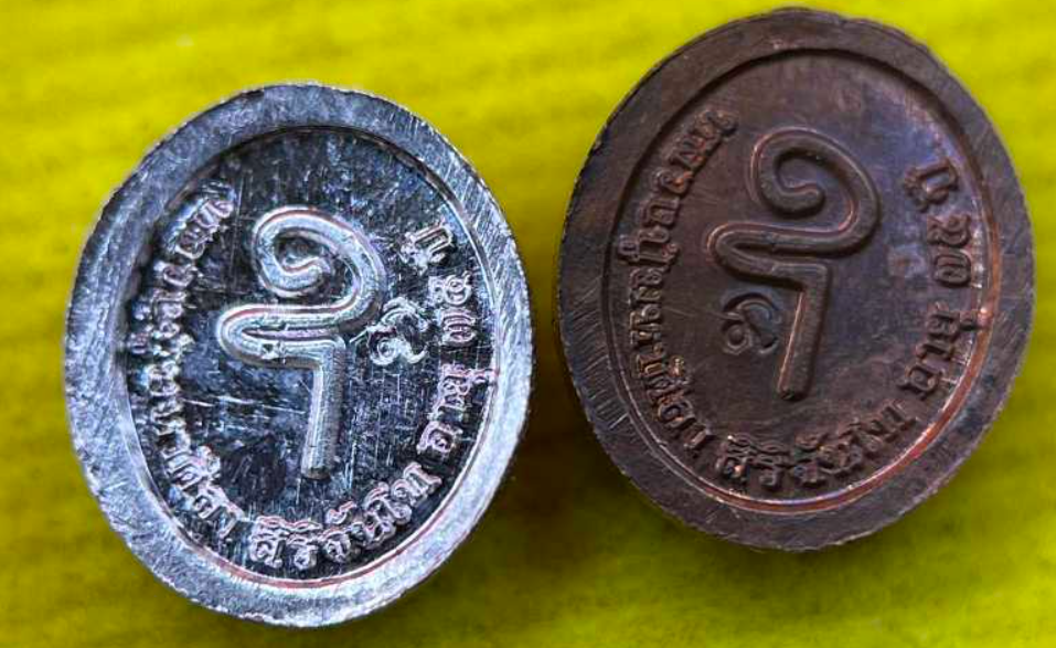 เหรียญเม็ดยา เลื่อนยศ หลวงปู่มหาศิลา สิริจันโท เนื้อเงินและนวะ พร้อมกล่องและบัตรการันตรี