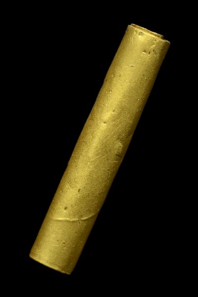 ตระกรุดแผ่นทองคำ คุณแม่บุญเรือน โตงบุญเติม คณะสามัคคีวิสุทธิ์ นอกเหนือจากวัตถุมงคลและของอธิฐานอื่นๆของคุณแม่ที่เคยทราบกันแล้ว ยังมีตระกรุดอีกชิ้นที่ไม่ค่อยมีให้ปรากฏให้เห็นแพร่หลาย จนบางท่านคิดว่าท่านไม่ได้สร้างตระกรุด จากคำบอกเล่าของศิษย์ยุคที่ทันยุคคุณแม่นั้น ลูกศิษย์จะนำแผ่นเงินหรือแผ่นทองไปให้คุณแม่อธิฐานและจาร"พุทโธ"ให้ ซึ่งก็ได้เป็นแบบแผ่นทองจารพุทโธนำมาใส่ในถุงเหนี่ยวทรัพย์รวมกับของอธิฐานชิ้นอื่นๆ บางท่านก็ได้นำมาม้วนทำเป็นตระกรุดใช้เองบ้าง จึงเป็นที่มาของตระกรุดพุทโธของท่าน ดอกนี้เป็นดอกที่ม้วนจากแผ่นทอง ขนาดเล็ก1ซ.ม. เป็นของดีหายากน่าใช้อีกชิ้นครับ