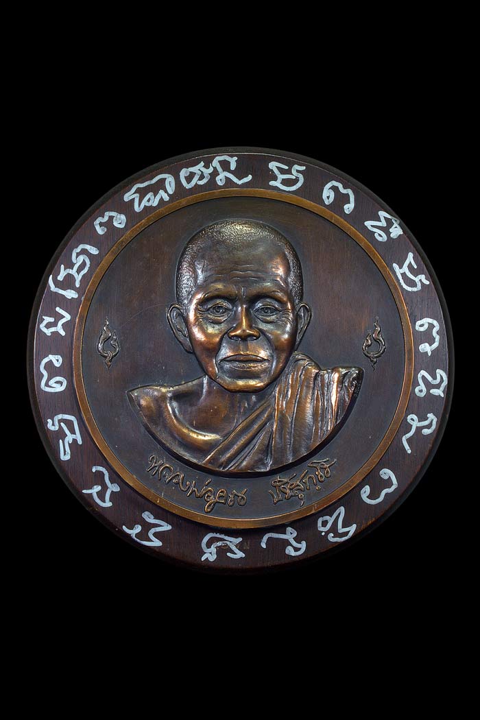 | เหรียญกลมรูปเหมือนครึ่งองค์ ขนาดบูชาบล็อคกองกษาปณ์ ( ขนาดเหรียญเนื้อโลหะ 8 นิ้ว , ฐานไม้ 10 นิ้ว ) หลวงพ่อคูณ ปริสุทฺโธ วัดบ้านไร่ รุ่น แซยิด 6 รอบ 72 ปี สงเคราะห์คนชราตลาดแค พ.ศ.2537 ( #ตอกโค้คKOON ) / จารยันต์อักขระด้วยหมึกลายมือหลวงพ่อคูณ นะโมพุทธายะ นะมะพะทะ มะพะทะนะ พะทะนะมะ ทะนะมะพะ / ผู้จัดสร้าง : คุณ ชัยรัตน์ กิตติหิรัญวัฒน์ คณะกรรมการกองทุนสงเคราะห์คนชราตลาดแค / วัตถุประสงค์ : สมทบทุนกองทุนสงเคราะห์คนชราตลาดแค และ นำรายได้ส่วนหนึ่งถวายหลวงพ่อคูณ ในวันครบรอบวันเกิด วันที่ 4 ตุลาคม 2537 ครบ 6 รอบ 72 ปี และ ช่วยบูรณะอุโบสถวัดราษฎร์ศรัทธาราม อ.บ้านลาด จ.เพชรบุรี และ สมทบทุนสร้างอุโบสถ วัดตลาดแค อ.โนนสูง จ.นครราชสีมา / สถานที่ผลิต : โรงงาน กษาปณ์ ประเทศไทย / ปลุกเสก : ณ อุโบสถวัดตลาดแค อ.โนนสูง จ.นครราชสีมา วันที่ 11 เมษายน พ.ศ.2537 เกจิคณาจารย์ 9 รูป อาทิ หลวงพ่อคูณ ปริสุทฺโธ ( จุดเทียนชัย ) , พระเทพวิสุทธิมงคล ( หลวงปู่ศรี มหาวีโร ) วัดประชาคมวนาราม จ.ร้อยเอ็ด ( ดับเทียนชัย ) , พระสุนทรธรรมากร ( หลวงปู่คำพันธ์ โฆสปัญโญ ) วัดธาตุมหาชัย จ.นครพนม , หลวงปู่วรพรตวิธาน วัดจุมพล จ.ขอนแก่น ( เหยียบรถกระดก )