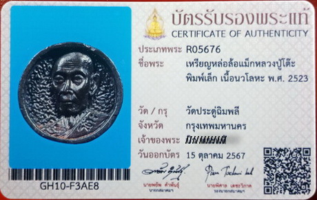 เหรียญหล่อนวโลหะ พิมพ์เล็ก หลวงปู่โต๊ะ ปี 2523