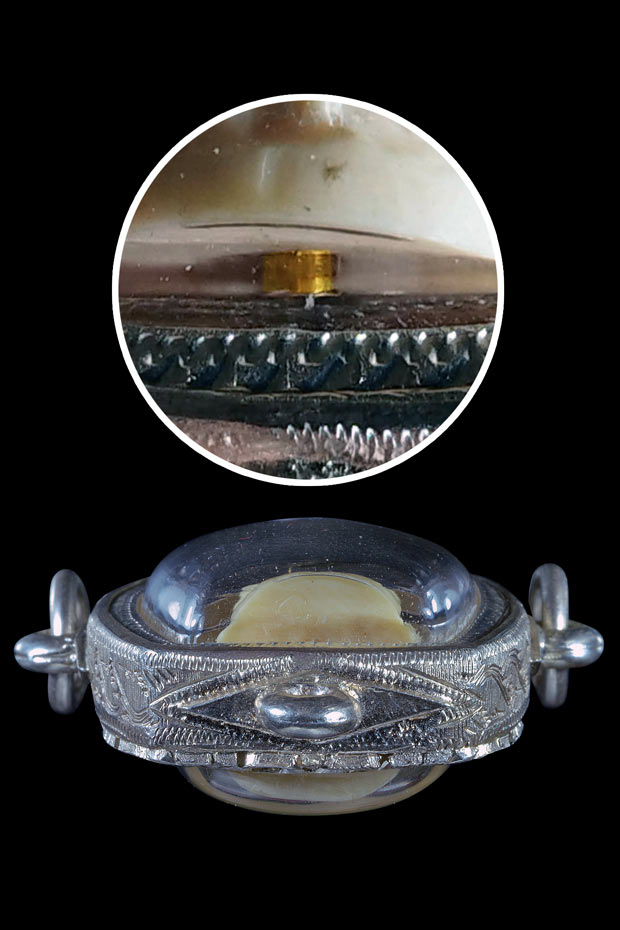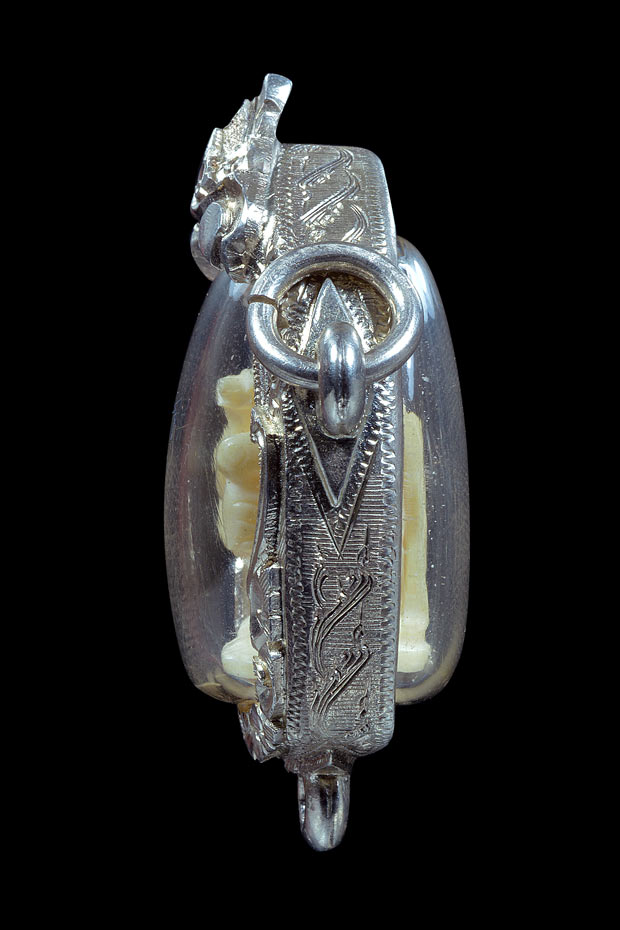 | รูปเหมือนนั่งยอง ( เนื้องๅแกะสลัก , สูง 2.5 ซ.ม. , ฐาน 1 ซ.ม. ) หลวงพ่อคูณ ปริสุทฺโธ วัดบ้านไร่ ( สอดตะกรุดทองคำฝังท้องแขน , จารยันต์อักขระ ยา นะ ) พ.ศ.2536 ( เลี่ยมเงิน สั่งทำ 3 ห่วง ) / จัดสร้าง 99 องค์ / แกะจากงาจำกัดหรือภายกระเด็นคืองาช้างตกมันแทงต้นไม้หักคาเป็นของหายากดีในตัว / ผู้จัดสร้าง : คุณ เติมศักดิ์ ปิยะมณีพร สำนักงานนักเลงพระ รามอินทรา กทม. / วัตถุประสงค์ : รายได้จากการเช่าวัตถุมงคลต่างๆสมทบทุนสร้างหอสมเด็จพุฒาจารย์โต พรหมรังสี เพื่อจรรโลงให้ศาสนารุ่งเรืองต่อไป ณ วัดแจ้งนอก อ.เมือง จ.นครราชสีมา / ปลุกเสก : ณ วัดแจ้งนอก พร้อม รุ่น บารมี อายุ 71 ปี , ราหูอมจันทร์กะลามะพร้าวตาเดียว , เหรียญนั่งพานปลดหนี้ปลอดภัย , โปสเตอร์รวมวัตถุมงคล , พระปิดตามหาลาโภ ยันต์ยุ่ง , เหรียญ รุ่น เจริญพร และ รุ่นอื่นๆ ในวันที่ 3 ตุลาคม พ.ศ.2536 |