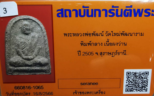 | พระหลวงพ่อพัฒน์ วัดพัฒนาราม พิมพ์กลาง เนื้อผง ปี2505 จ.สุราษฎร์ธานี |