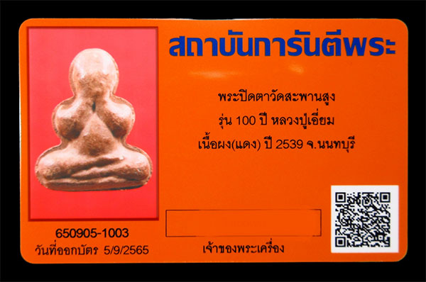เปิด พระปิดตาวัดสะพานสูง รุ่น 100 ปี หลวงปู่เอี่ยม เนื้อผงแดง ปี 2539 จ.นนทบุรี (พระสภาพสวยเดิม พร้อมบัตรรับประกันพระแท้)